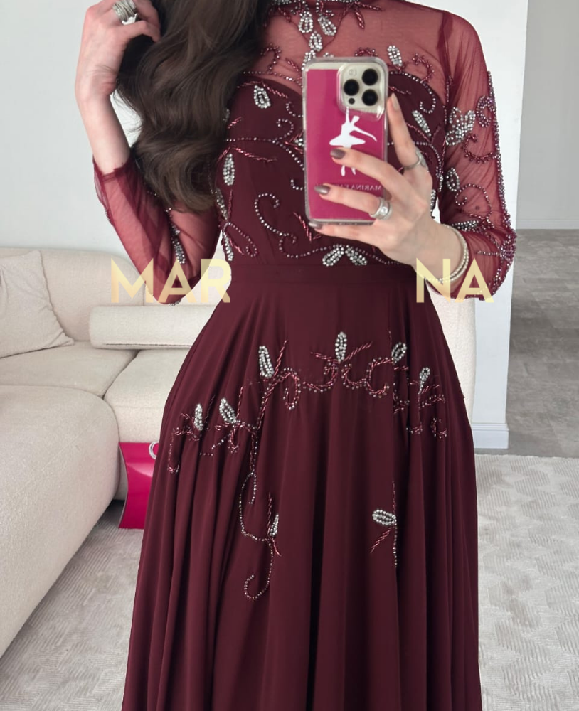 فستان الاميره (فستان بالون البرغندي مزين بالتطريز اليدوي)