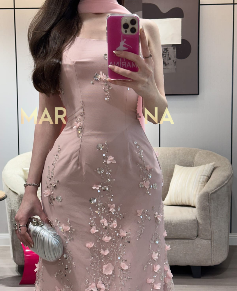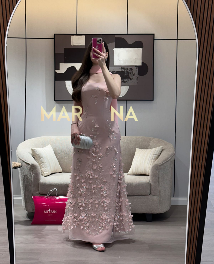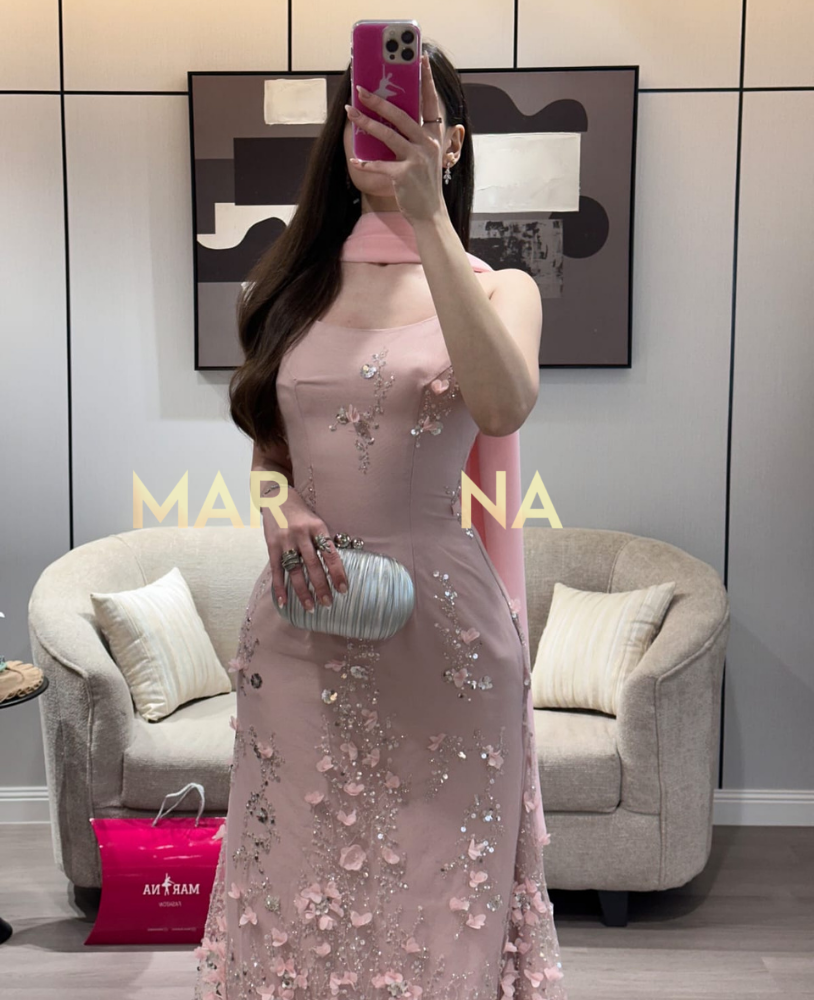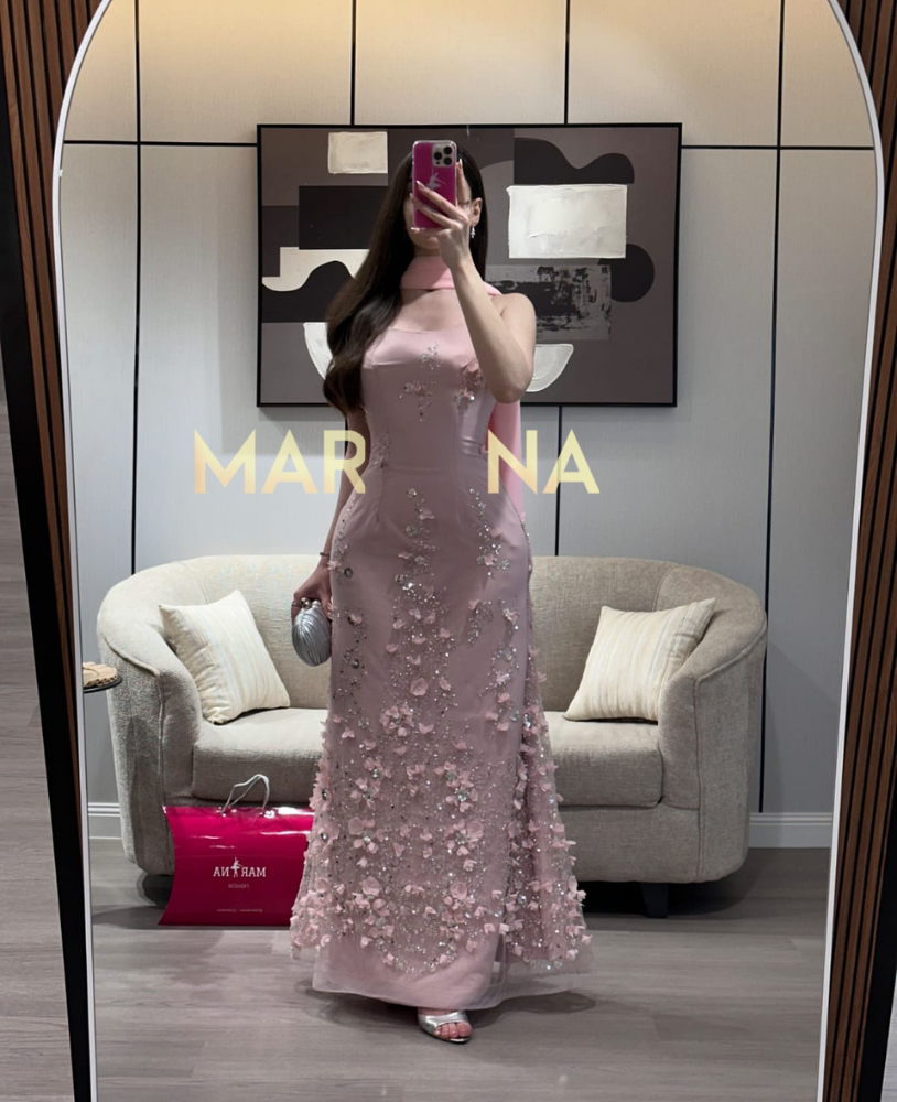فستان اونا (فستان وردي مزين بكلفه مورده)