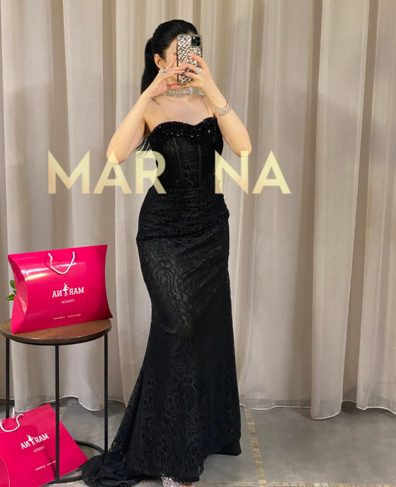 ارتقي بإطلالتك مع فستان ايفانو الذي يأتي بلون أسود جذاب ويتميز بتطريز فاخر مُقدم لكن من متجر Marina Fashion
