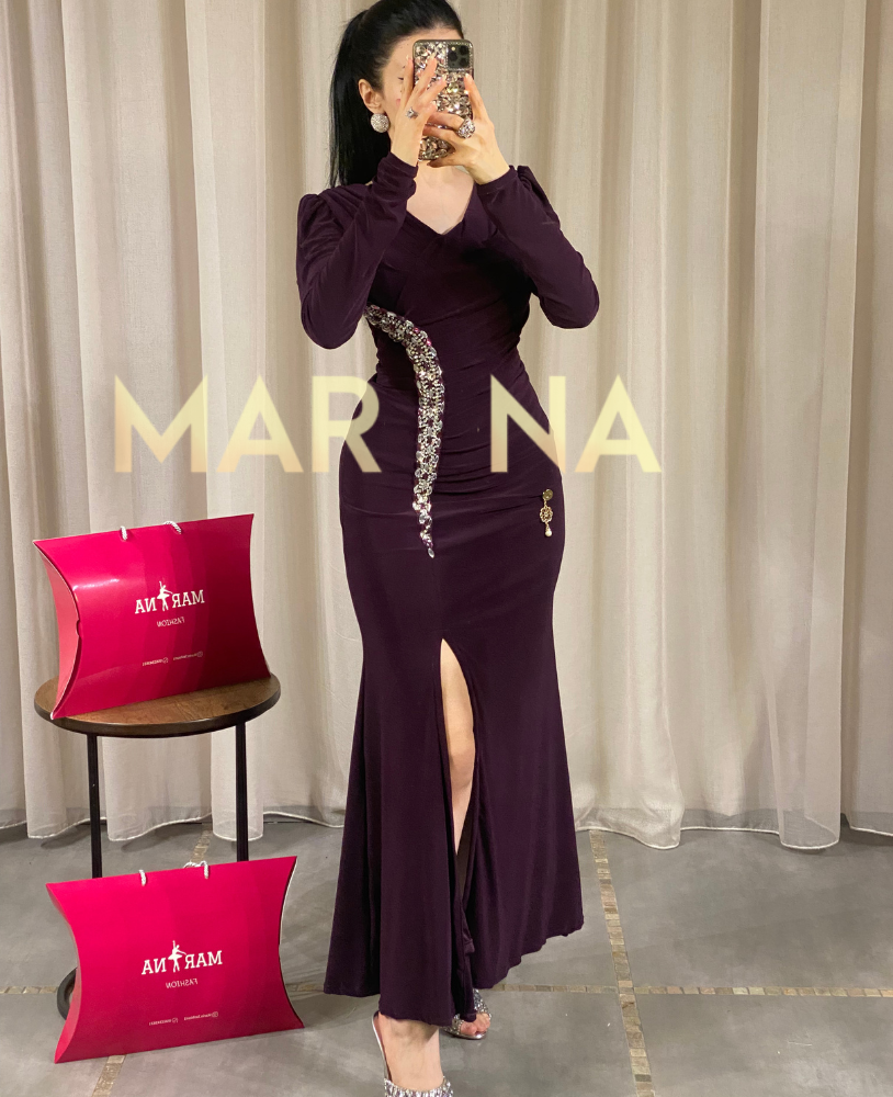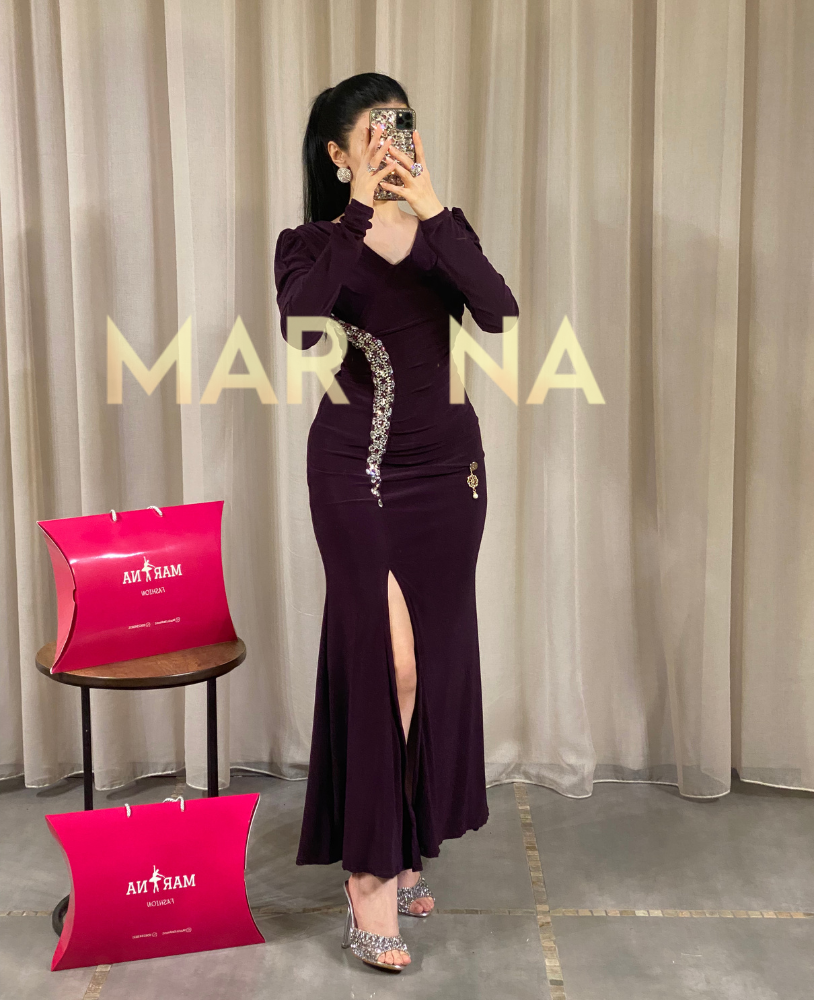 فستان ريهام فستان لمعة استرتش أنيق فستان سهرة وبإضافة تطريزات بسيطة يجمع بين الأناقة والفخامة مُقدم لكن من متجر Marina Fashion